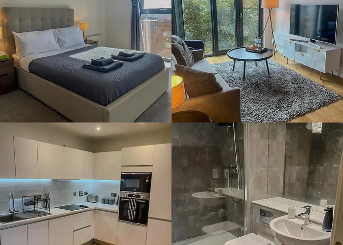 Está ubicado a 2 km de la Calle Corporation Street y aproximadamente a tan solo 1 km del Centro de Convenciones ICC de Birmingham. Desde este apartamento de 80 m², la Biblioteca de Birmingham está a unos 15 minutos a pie. El Centro comercial The Mailbox también está al lado de este apartamento.